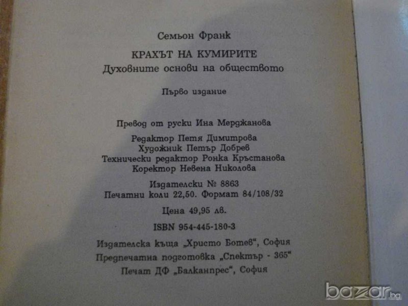 Книга "Крахът на кумирите - Семьон Франк" - 360 стр. → Обява 8033951