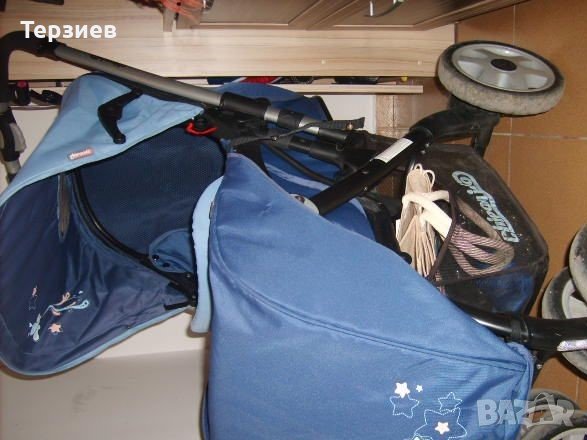 Продавам количка Чиполино в отлично състояние,подвижна дръжка - обръщаща се посока, сваляща се напълно до хоризонтално положение облегалка син цвят в комплект със дъждобран и зимен чувал.