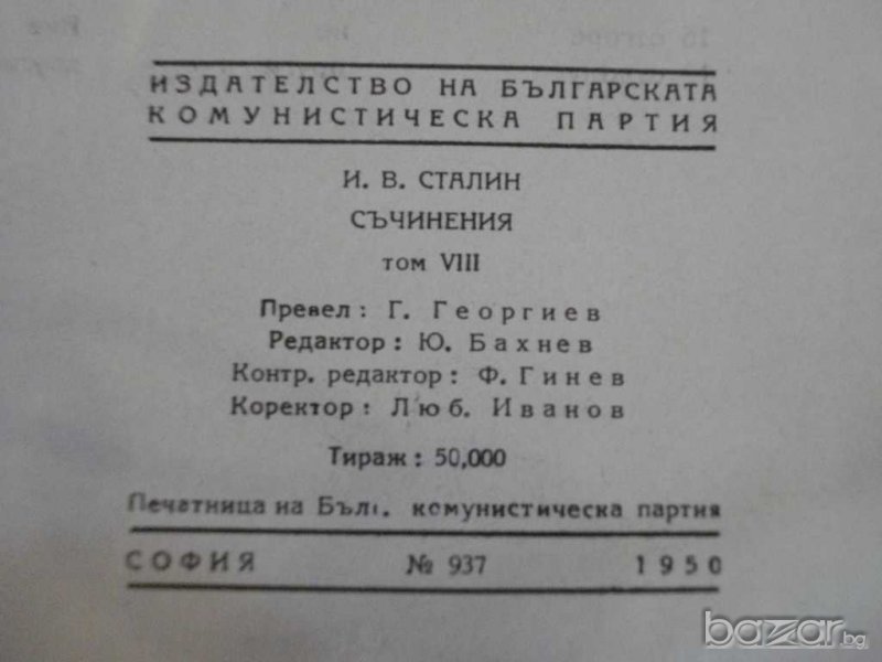 Книга "Съчинения - том 8 - И.Сталин" - 334 стр. → Обява 8054513
