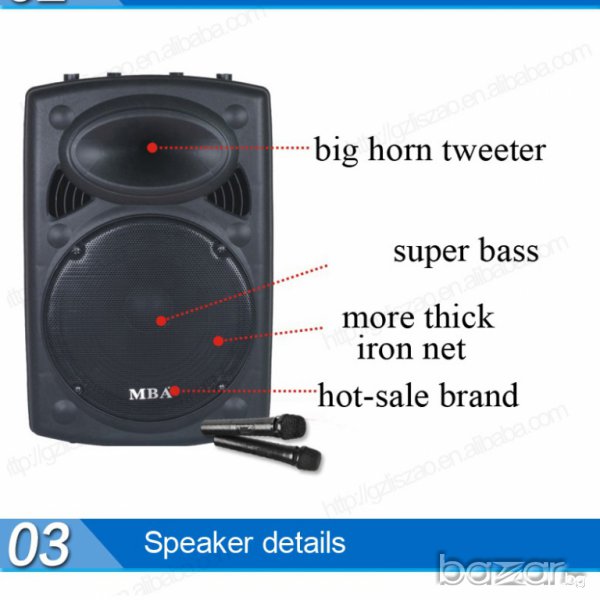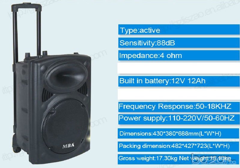 15-ка с bluetooth мощна активна тонколона Mba F15 Караоке с безжичeн микрофони,усилвател