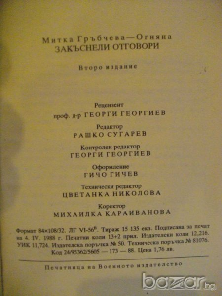 Книга "Закъснели отговори... - Митка Гръбчева" - 206 стр. → Обява 8124230