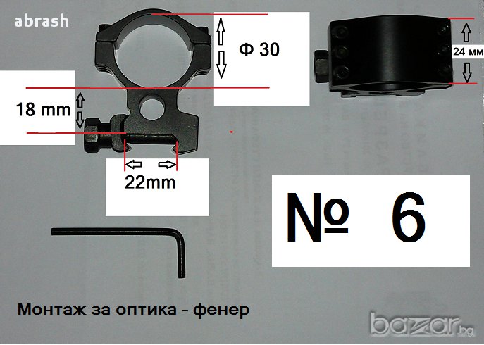 3 - 30лв за монтаж на фенер върху оптика 30 мм или 1 инч