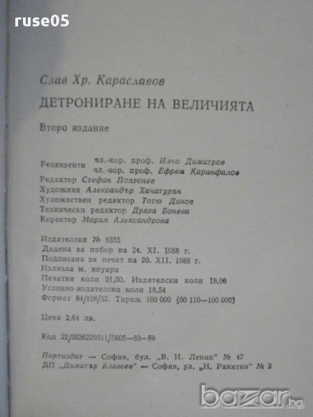 Книга "Детрониране на величията-Слав Хр.Караславов"-342 стр. → Обява 8266763
