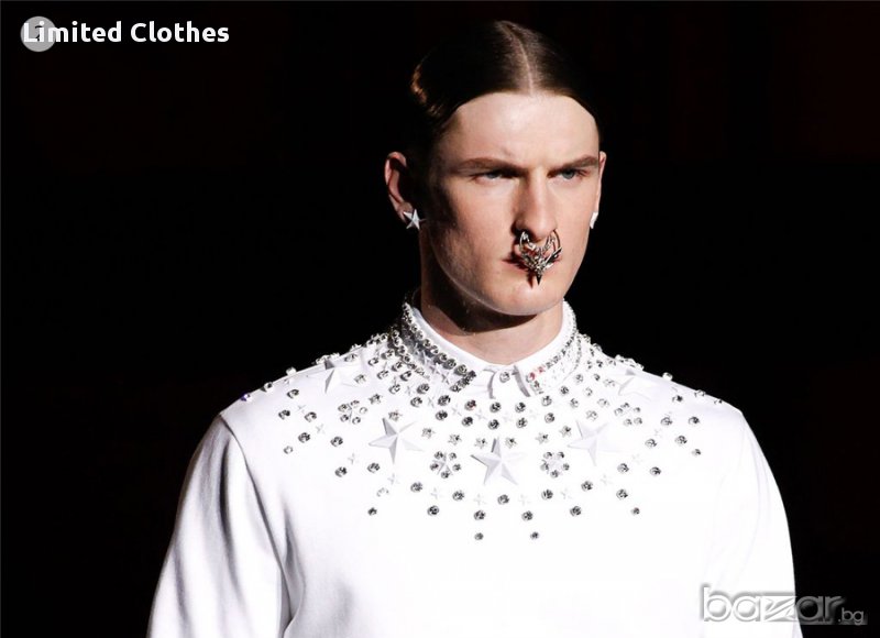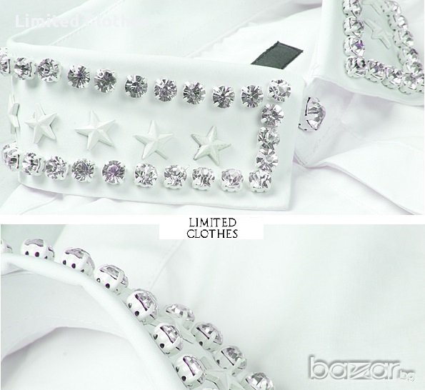 към яката на ризата има пришити кристални камъни и звезди