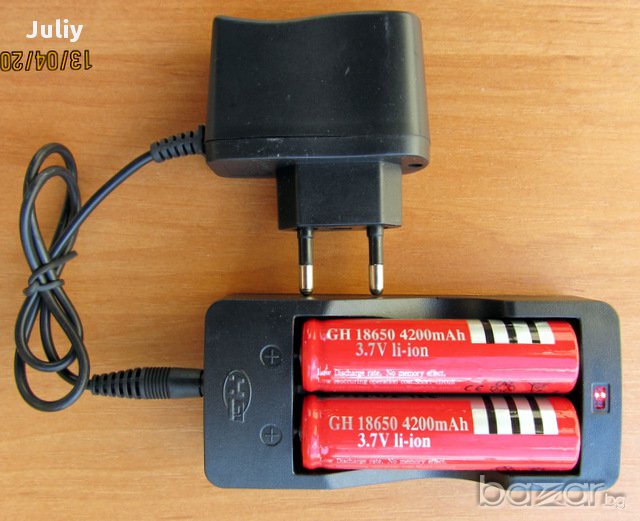 Прожектора е окомплектован с по-новия модел зарядно, което е показано на снимките. Зарядното е по-нов модел и е по-надеждно и функционално.