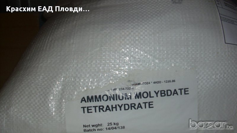 Фирма КРАСХИМ ЕАД е вносител на Амониев Молибдат и разполага с количество на склад.