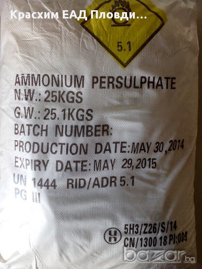 Амониев Персулфат, снимка 1 - Други - 8301056 Амониев Персулфат, снимка 2 - Други - 8301056 Амониев Персулфат, снимка 3 - Други - 8301056 1/3