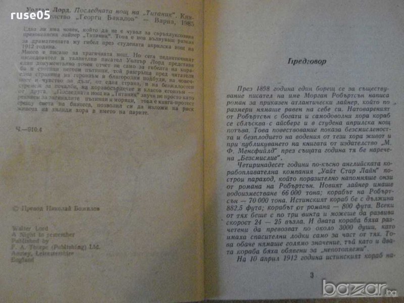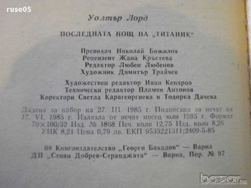Книга "Последната нощ на *Титаник* - Уолтър Лорд" - 204 стр. → Обява 8302353