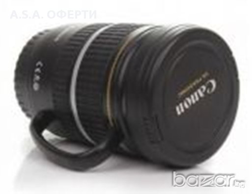 Доставете си истинско удоволствие с пиенето на сутрешното кафе. Дори една оригинална термос чаша е достатъчна, за да подобри настроението ви с различния си дизайн. Термос чашата е реалистична и повтаря познатата имитация на истински обектив Canon EF-S 17-55 mm. Сега обаче чашата разполага с удобна дръжка за по-добър захват. Изработката е наистина впечатляваща!