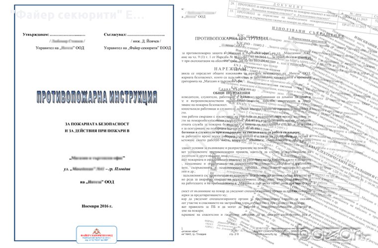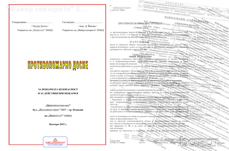 Противопожарно досие или инструкция за обект (правила, инструкции, планове, заповеди, протоколи и др.).