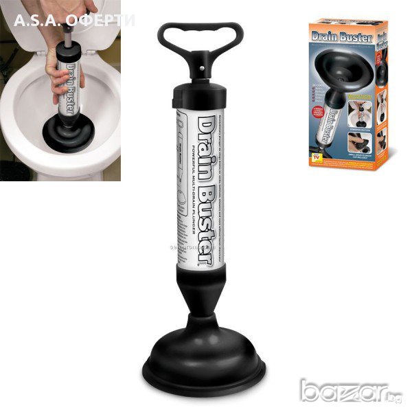 Спестете време и пари за скъпи водопроводчици и се справете с проблемите в тоалетната сами. Drain Buster е революционна вакуумна помпа, която ви дава максимална сила за отпушване на всякакви канали без използването на вредни химикали – използвате единствено и само въздух.