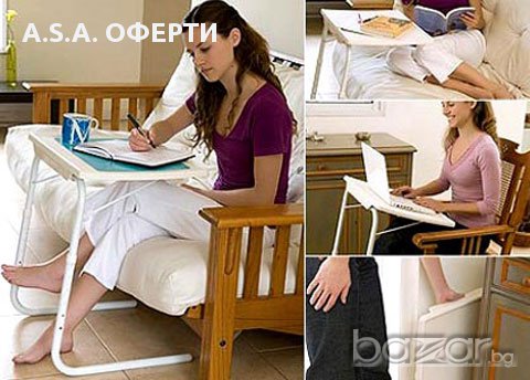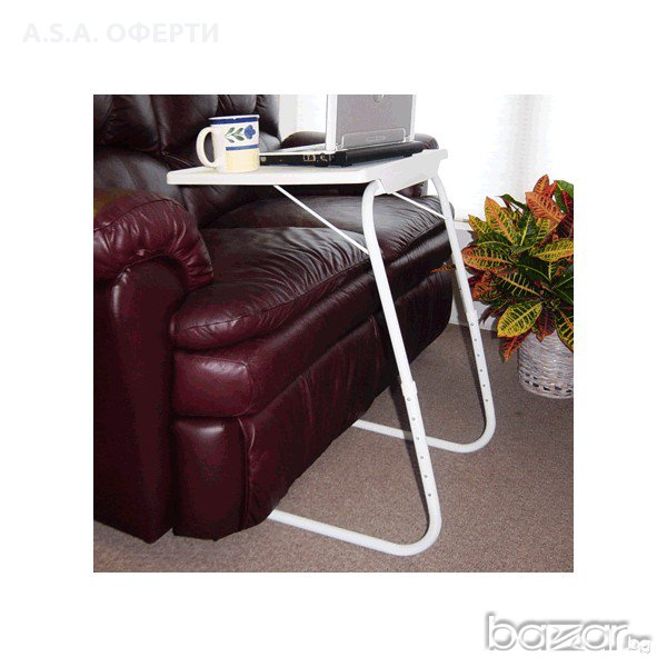 Търсите масичка, която може да се използва за различни цели? Универсалната маса модел „Table Mate II” можете да я използвате като маса за лаптоп, бюро, четене, писане, рисуване, игри , хранене, помощна маса. Става за вътрешна и външна употреба , у дома, къмпинг, пикници и др. Сглобява бързо без никакви гайки или болтове и е напълно регулируема-6 различни височини-3 ъгли на накланяне-Разстояние между краката-47 см-Размер на таблата 52 см×40 см х 53 см- 73 см-Материал: алуминий и пластмаса-Цвят: бял