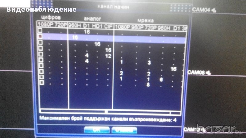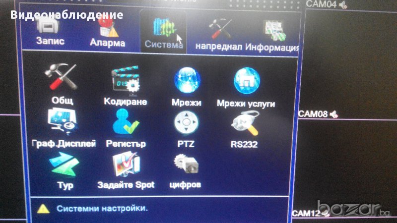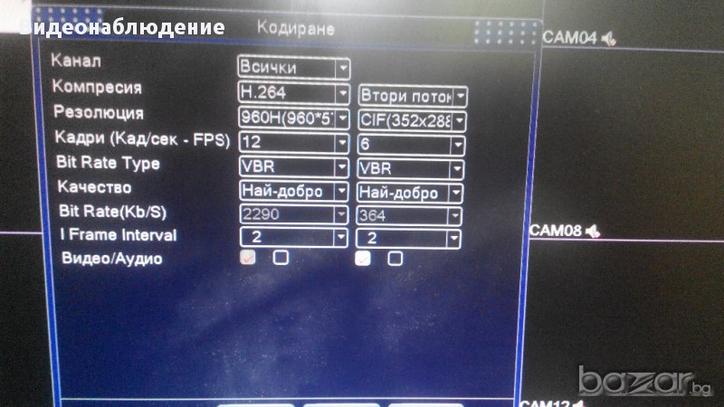 Главен Процесор: Hi-silicon с чип Hi3521Високо ефективна компресия: H.264Модел: 7216HCloud Technology: Облачната технология позволява да виждате двр-а и съотвено камерите, вързани към него от всяка интернет точка от цял свят и от всеки смартфон от цял свят, без да имате реално ай-пи и някакви специални настройки, без значение зад какъв Firewall седи устройството! (P2P Cloud функция)HDMI: 1080P изход!В режим аналогов DVR-a поддържа 16 камери едновременно в най-високата резолюция 960H & D1!Аудио Вход: 2-канален RCAПоддържа HDD: максимум 3TB (хард диск не е включен в комплекта)IP входове (NVR функцията): 2 * 1080P + 2 * 720P & 1 * 1080P + 1 * 720P + 6 * 960h и 8 * 720p16 канално възпроизвеждане и 16 канален запис на 16 камери в едно и също време!16 канала с общо 400 кадъра в секунда: в резолюция D1 @ при 25 кадъра в секунда на канал, 16 канала в резолюция 960H @ при 12 кадъра в секунда на каналПоддържа Symbian, S60v3/V5, Windows Mobile, Iphone, Android, BlackBerry - преглед на видеото чрез смартфон на живо през 3GДва USB2.0 слота, USB мишка, Архивиране, Запис на ДВД, ъпгрейд на системата и т.н.Стабилен мрежови сървър, поддържа преглед през Internet Explorer и CMS (мениджър за над 500 DVR-a)Меню на 25 езика: Български, Китайски, Руски, Английски, Италиански, Португалски, Испански, Арабски и другиВградени услуги за безплатен DDNS: 3322.org, dyndns.net, oray.net, myq-see.comПоддържа VGA High Definition изход (1280*1024), поддържа широкоекранен LCD (1440*900)Дисплей Меню: 1/4/8/9/16 позиции едновременноВидео стандарти: PAL (625 линии, 50 кадъра в секунда); NTSC (525 линии, 60 кадъра в секунда)Качество на преглед: PAL, D1(704×576); NTSC, D1 (704×480)Кодиране способност: 400/480 @ 25 кадъра в секунда за 16 канала в D1 резолюция, 16 канала в 960H резолюция @ 12 кадъра в секундаАлармени зони за откриване на движение: 396 (22 * 18) зони на детекция, много нива на настройка на чувствителносттаРежим на запис: Ръчно > Аларма > Динамична Детекция > ТаймингВъзпроизвеждане: Един канал или мулти-канално възпроизвеждане (16 канален макс синхронизирано възпроизвеждане)Режим на търсене: Време/Дата, Аларма, Сензор движение - точно търсене (с точност до секундата)Място за съхранение & Backup: CIF: 5G/ДЕН на канал- D1:20G/ДЕН на каналСъхранение на видеото: на твърд диск или по мрежатаBackup Mode: Network - запис по мрежата, USB запис на мобилен твърд диск и USB запис чрез двд записвачкаВидео вход: 16 BNC канала, 1.0Vp-стр.75Видео изход: 1 канал RCA + HDMI изходАудио вход: 2-канален RCAАудио изход: 1канал RCAМрежови интерфейс: RJ-45 (10M / 100M)PTZ контрола: 1 RS485USB интерфейс: 2 * USBЗахранване: 12V/3AРазмери: 26 x 21 x 4,3 смАко желаете хард диск към двр-а, то той ще ви струва 1тб - 119лв.; 2тб - 189лв; 3тб - 249лв; 4тб - 349лв. Хард дисковете са с 2 години гаранция.