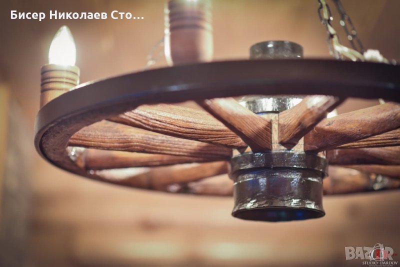 Етно полилеи от автентични колела на каруца с дървени чашки за осветление → Обява 8396948
