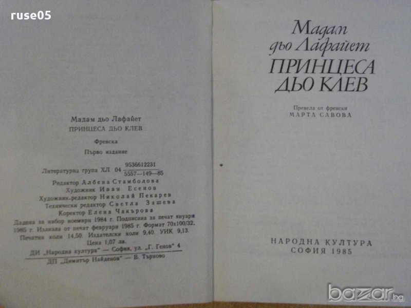 Книга "Принцеса дьо Клев-Мадам дьо Лафайет" - 232 стр. → Обява 8421324