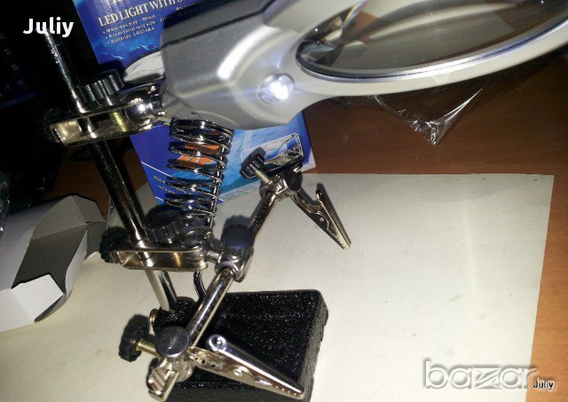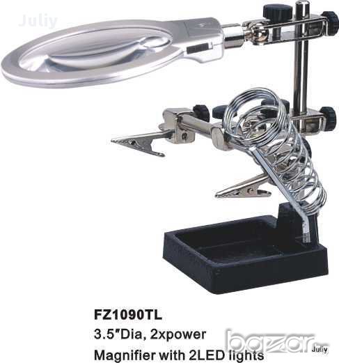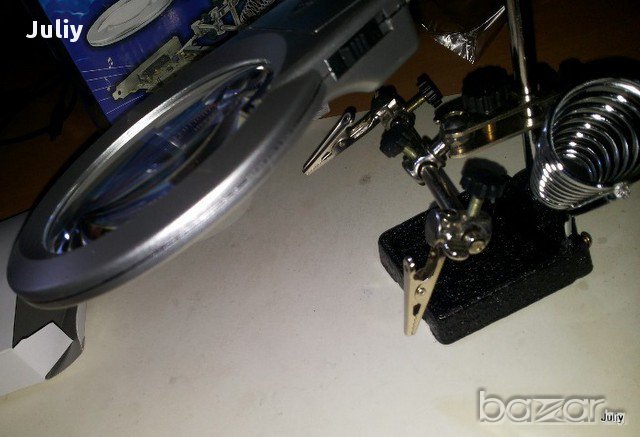 Стойка за поялник с лупа , работна светлина и щипки - тип трета ръка