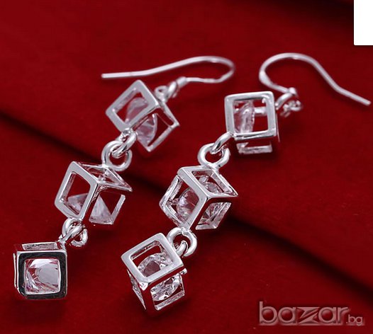 Страхотни сребърни обеци квадрати → Обява 8496222