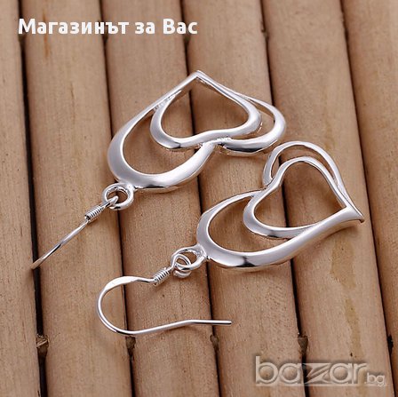 Сребърни обеци с две сърца, снимка 1 - Обеци - 8496262 Сребърни обеци с две сърца, снимка 2 - Обеци - 8496262 Сребърни обеци с две сърца, снимка 3 - Обеци - 8496262 1/3
