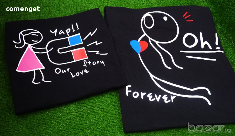 СВЕТИ ВАЛЕНТИН! ЗА ВЛЮБЕНИ! Уникални тениски с LOVE Story принт! ИЛИ Поръчай с ТВОЯ идея или дизайн!