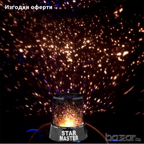 Станете истински астроном в собствения си дом с помощта на Star Master. Устройството ще прожектира директно на стената или на тавана у вас звездите такива, каквито не може да ги видите и в най-ясната нощ. Това е вашият личен планетариум, с който в домашни условия можете да се отдадете на съзерцание и релакс, а след това можете да се насладите на истински сън “под звездите”.