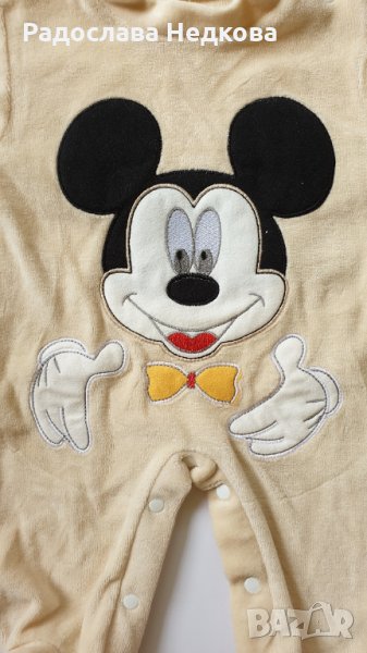 Страхотен плюшен гащеризон с Мики Маус - цвят екрю. Налични размери - 68 см. Внос от Турция!