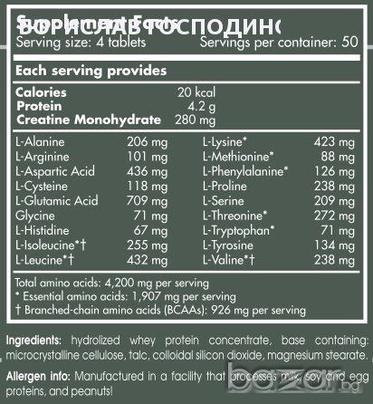 Scitec Nutrition Amino 5600 комбинира по уникален начин ултрафилтрирани и хидролизирани суроватъчни аминокиселини. Суроватъчният протеин в него е изключително лесно усвоим и с много по-добър аминокиселинен профил от придобилия популярност напоследък яйчен протеин.