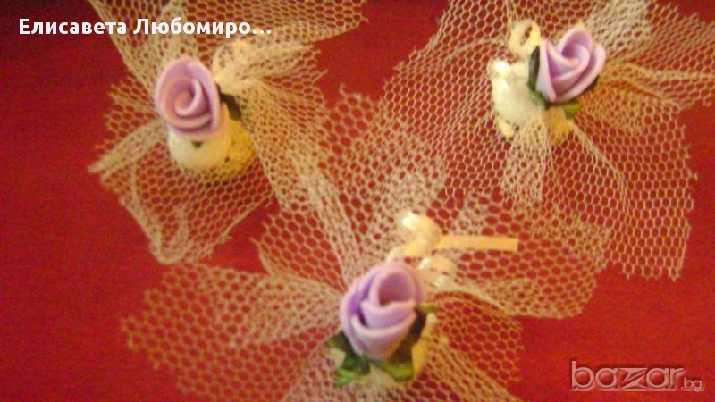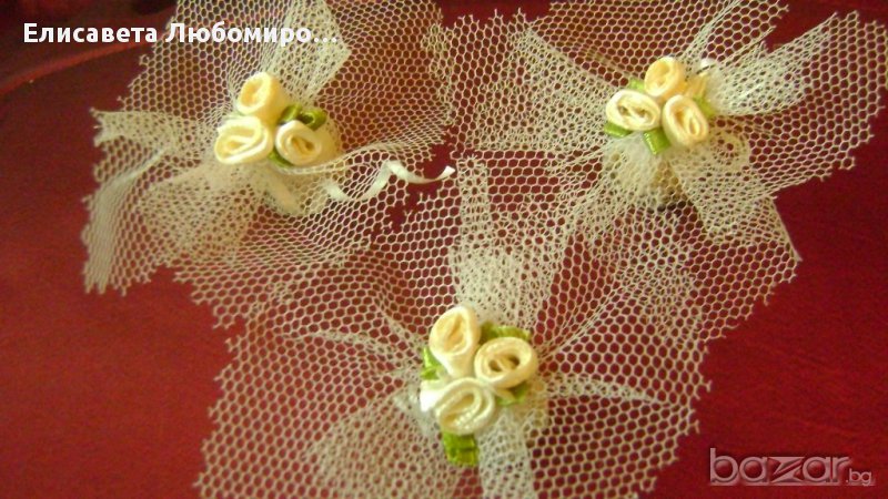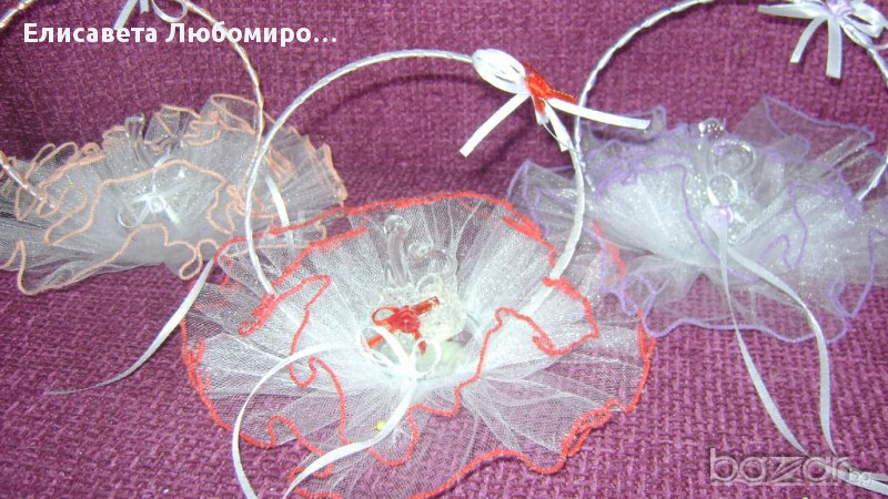 кошничка за халки с лебеди,сърца и други цена-10лв.Кошници за късметчета,подаръци и други от 10-20лв.Късметчета от 0,30лв.-0,50лв.Всички аксесоари може да се изработят във всякакви цветове и комбинаций.