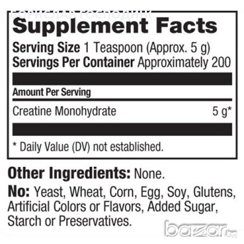 Начин на приемане: Приемайте по 5 грама от Scitec Nutrition 100% Creatine преди тренировка. В нетренировъчни дни 5 грама сутрин на гладно.