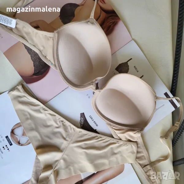 - напълно изчистен в чашката и в задната част (колана), което го прави подходящ за носене с фини и(или) прозрачни дрехи