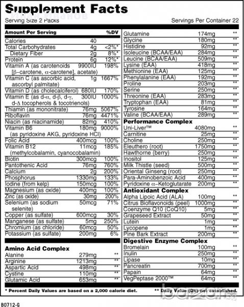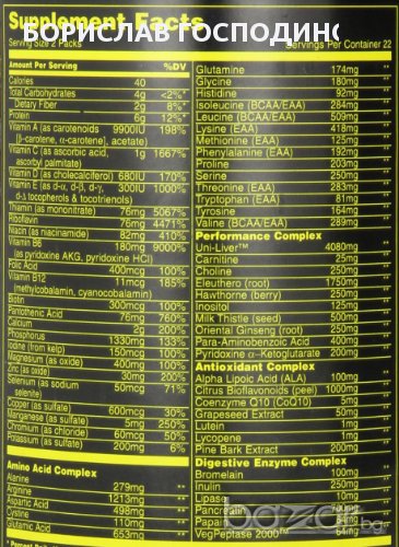 Universal Nutrition съдържа в себе си основните неща, които са важни за активно спортуващите. Ще допринесе за по-добро следтренировъчно възстановяване, по-добра работа на организма и едуб изпълнен с енергия и тонус работен или тренировъчен ден.