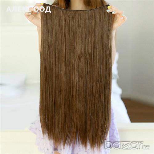 Страхотни екстеишани. Синтетичен косъм 95% доближаващ се до естествения.Треса готова за прикачане и удължаване на вашата коса , с 5 клипси 60 см , 25 см от ухо до ухо без изкуствени отблясъци удължава и сгъстява косата...Термична обработка до 180 градуса.Налични опашки 70см