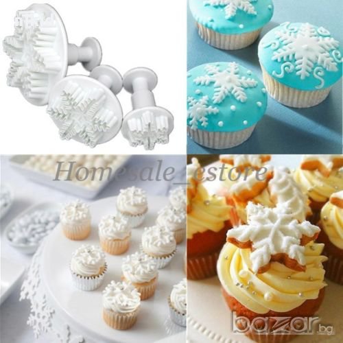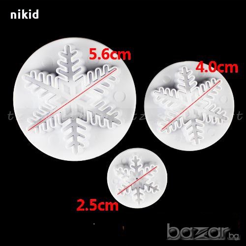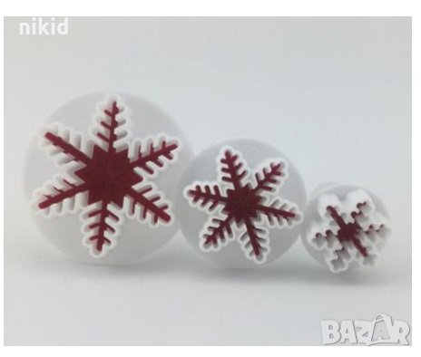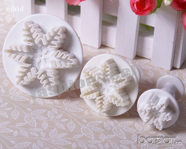 3 бр тънки снежинки снежинка пластмасови форми резци с бутало за фондан сладки украса тесто → Обява 8698218