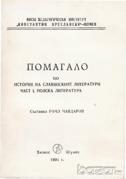 Помагало по история на славянските литератури. Полска литература. Съставител Рачо Чавдаров, Шумен 1991- цена 7 лв,
