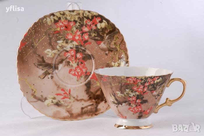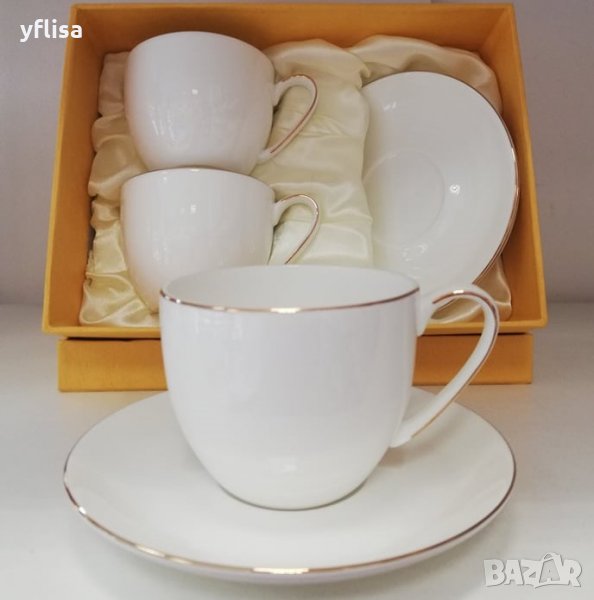 Елегантни чаши с чинийка от костен порцелан 180 мл. с покритие от нефрит придаващ им допълнителен блясък и здравина.