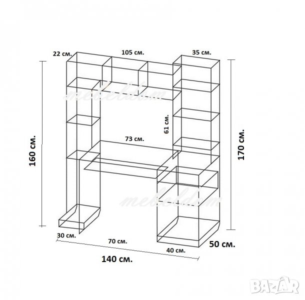 Бюро 140см. с надстройка и етажерна част(код-1097) поставяне: до стена,бюрото е еднолицево