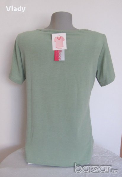 Нова блузка в приятен зелен цвят, с бродерия и пайети на деколтето, с етикет. Размер XL , 90% памук. Размери: рамене-38 см, гръдна-47 см, дължина-61 см.