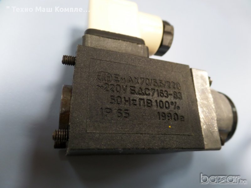 Дадените ел.магнитни бобини са предназначени за български хидравлични разпределители от серията РХ06, размера на присъединителния контур 37х37 mm. Цената е 10лв/бр.