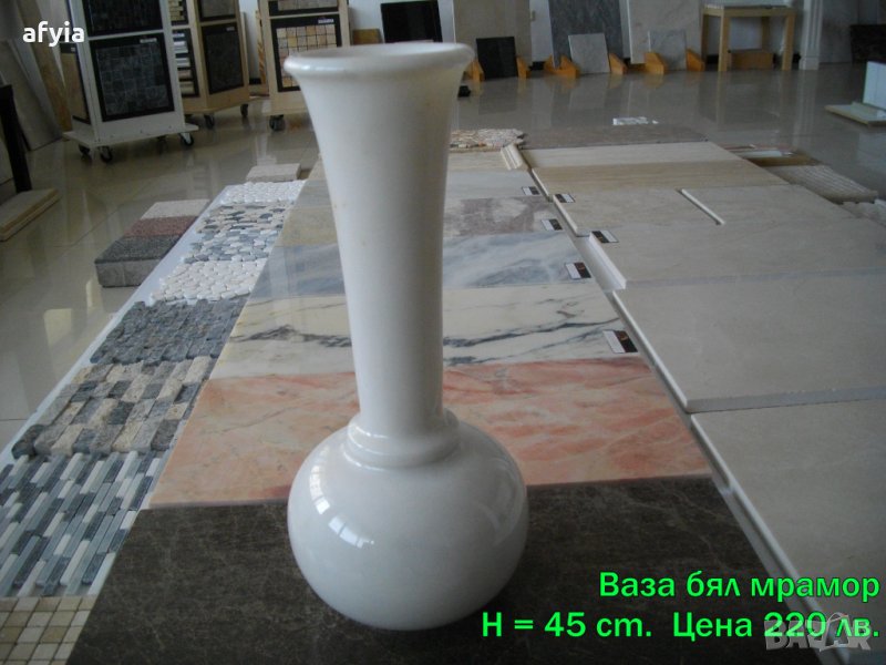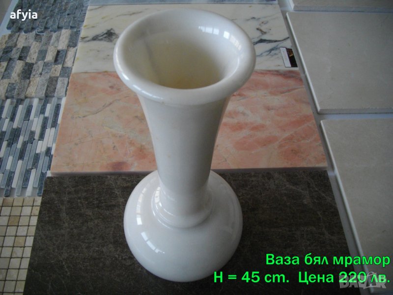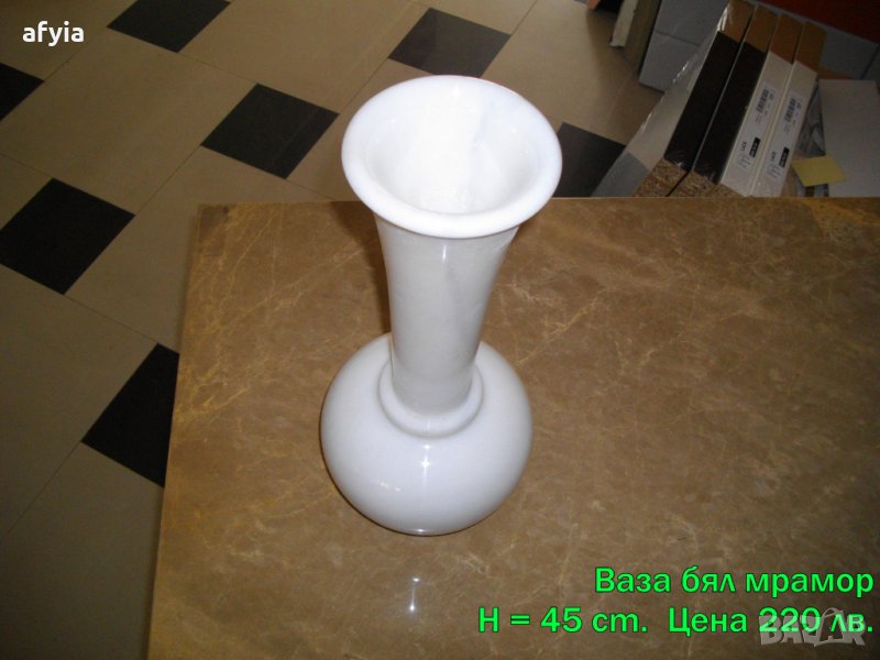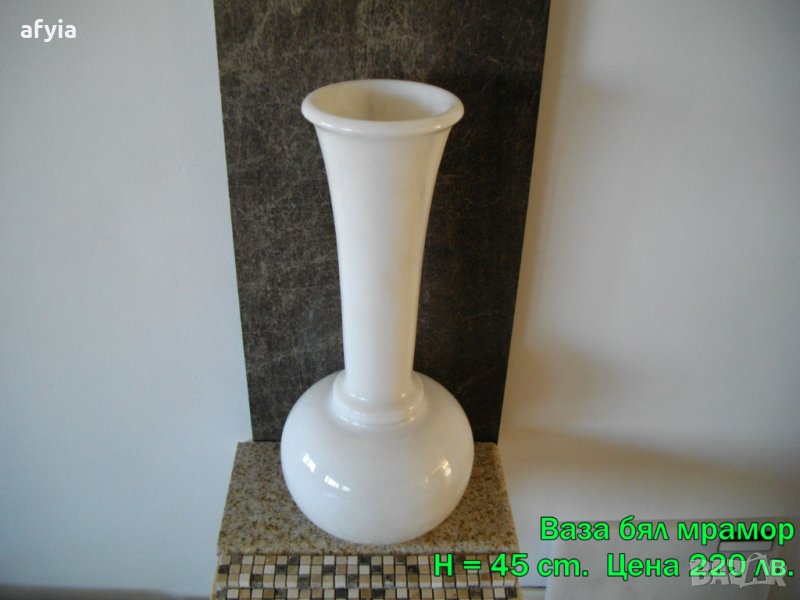 Луксозна ваза от бял мрамор, полупрозрачен на светлина.