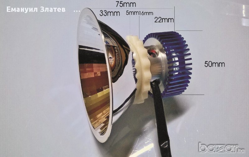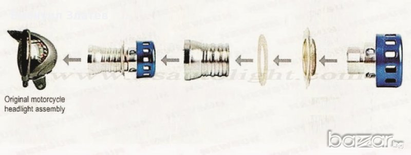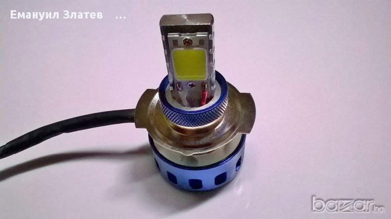 LED фар с два броя COB LED за кола и мотор с три адаптера за различни цокли H4,H6,H7.