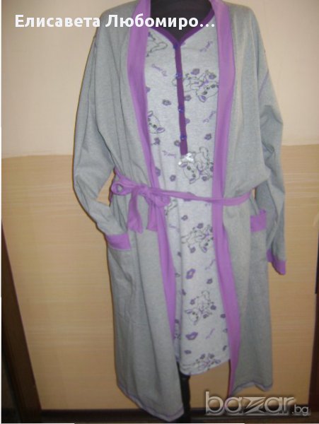 нощница на точки,къс ръкав,лилаво-М,L,корал-М ,сива с тюркоаз 46/S-M/,халат46/S-M/.48/M-L/,50/L-ХL/, Нощници къс ръкав-15лв. Дълъг ръкав-15лв. Халат-17лв. Светло лилавата на презрамки 48/М-Л/,тъмно лилавата 50/Л-ХЛ -15 лв. Къса с котва -46/С-М/,48/м -М-Л/,.50/Л-ХЛ/,,52/ХЛ-ХХЛ/ 10лв. -много удобни и за плаж.