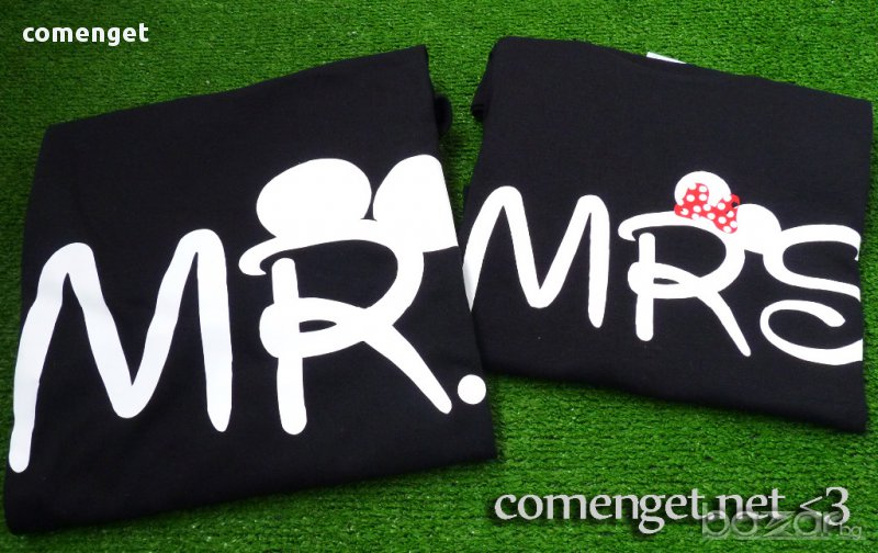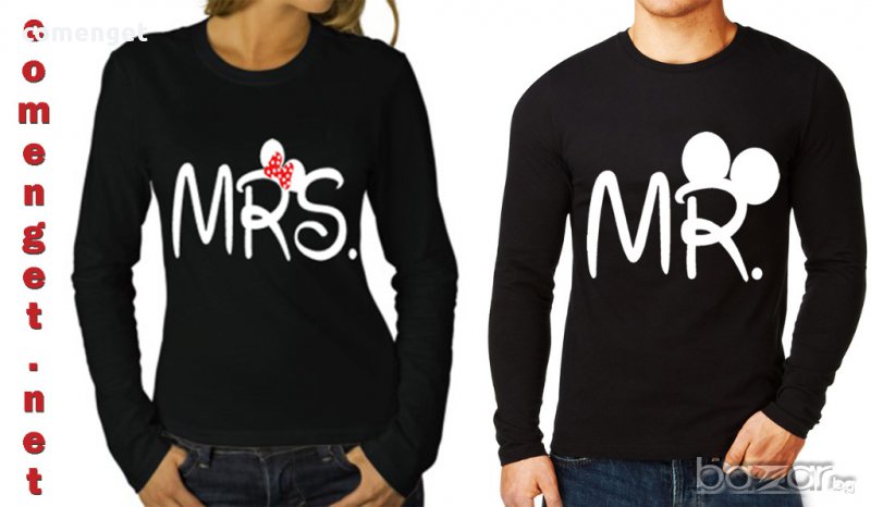 ЗА ВЛЮБЕНИ! MR & MRS LOVE блузи с MICKEY MOUSE принт! ПОРЪЧАЙ модел С ТВОЯ идея!