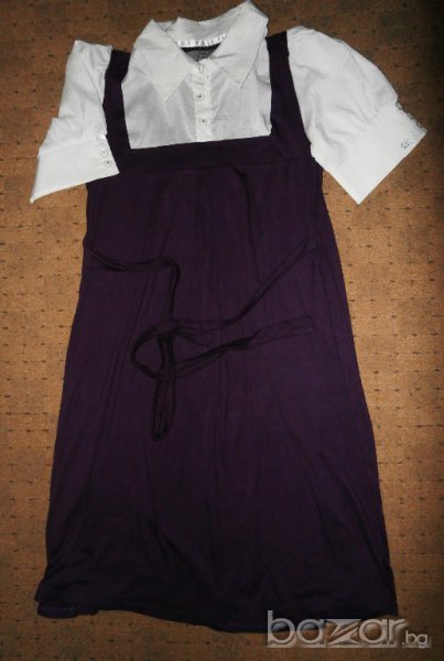 Дамска рокля-сукман в лилаво. Интересна комбинация с риза. Марка SOUL REBEL. Отговаря на размер S/M. Има достатъчно свобода около тялото, което позволява да се носи и от бременни жени и по-пълни около талията. Може да се регулира с колана, който е прикрепен към роклята. Роклята-сукман е обличана само веднъж. В отлично състояние е.