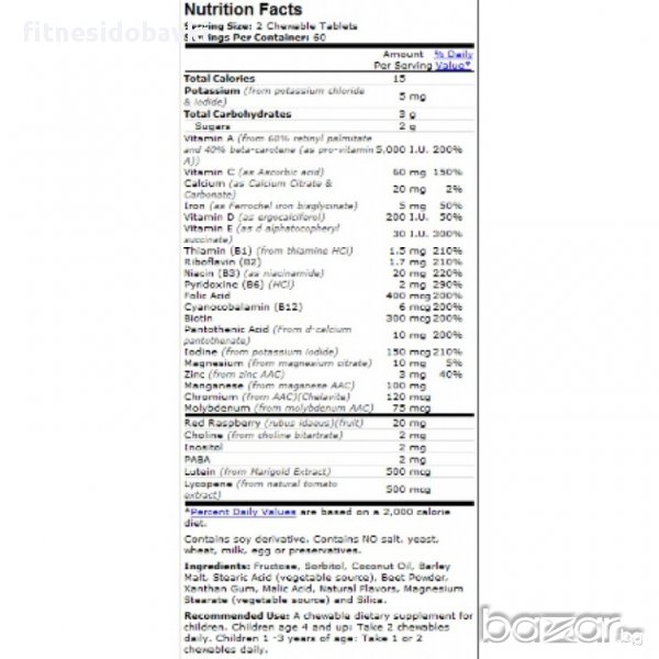 Детски Витамини Kid Vits съдържа 120 дъвчащи таблетки с формата на животни и вкус на портокал (Orange Splash)!