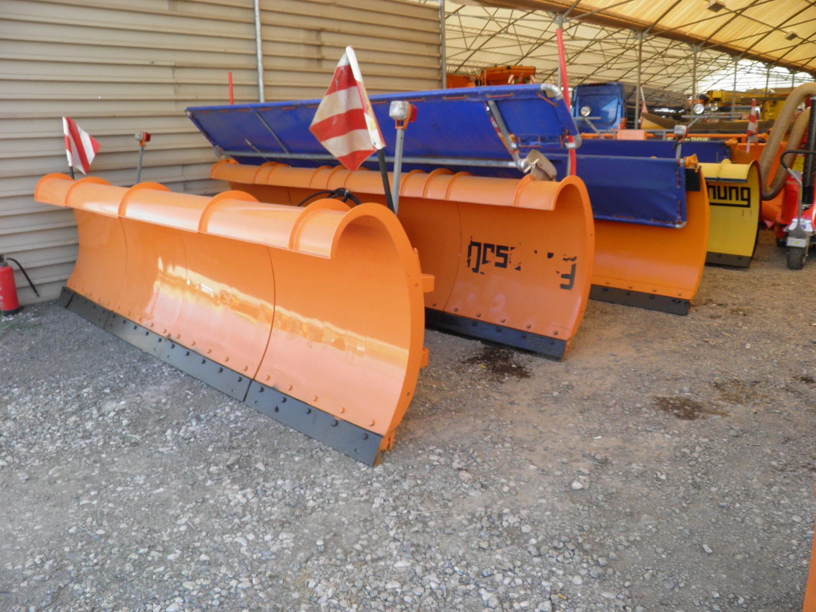 Гребла за сняг , размери от 2, 80 до 4, 00 метра 10 броя налични , фреза за сняг 3 броя налични , устроиства за опесачаване от 0, 8 до 9 кубика , всичко внос от Швеицария , за повече информация 0888 992750 .