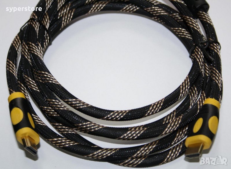 Качествен кабел HDMI - HDMI за връзка с компютър монитор или телевизор с компютър или лаптоп notebook с изключително здрава външна оплетка и феритен филтър.