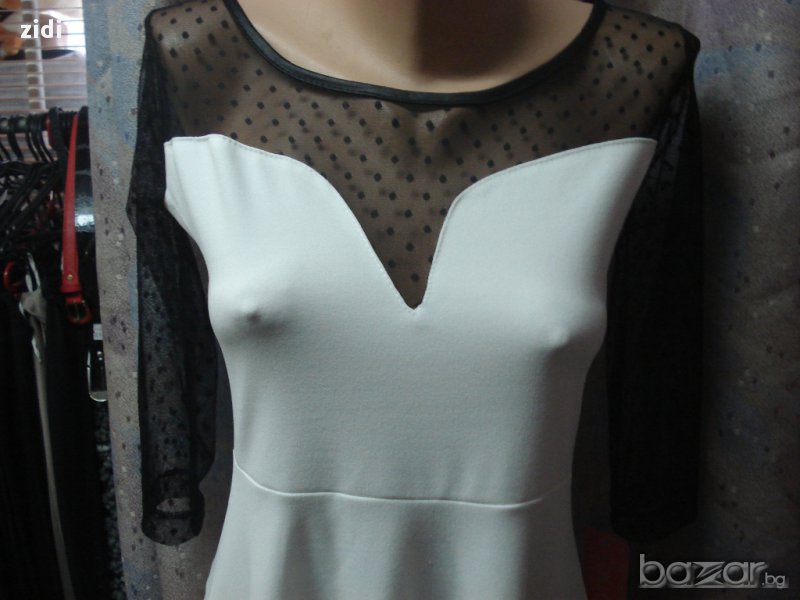 Невероятна нежна бяла рокличка с черна дантела.Цялата дължина 82см, бюст 84в обиколка, талия 80см обиколка.