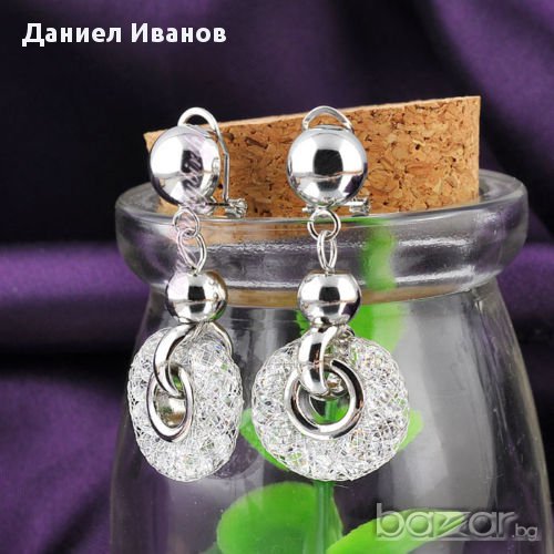 Златни Обеци От Цирконий И 18 К Бяло Злато НОВИ → Обява 9069121