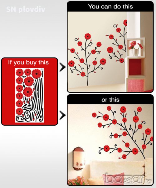 дърво с гербери,нов стикер от висококачествен пълноцветен печат.Може да се залепи върху стена,стъкло,метал,дърво,пластмаса и др. Преди залепване повърхността се почиства добре,трябва да е суха. Самият стикер е съставен от множество отделни части(т.е. не е едно цяло).Като всеки един елемент е номериран.Като се изгради става с приблизителни размери 100-110см/80см .