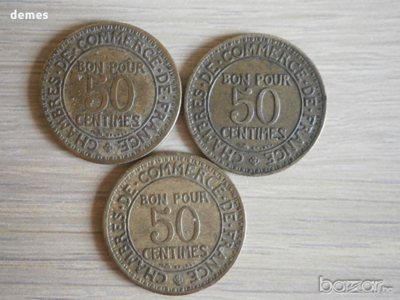 Лот Франция - 50 сантима Bon Pour - 1924,1925 и 1926г., 40 m