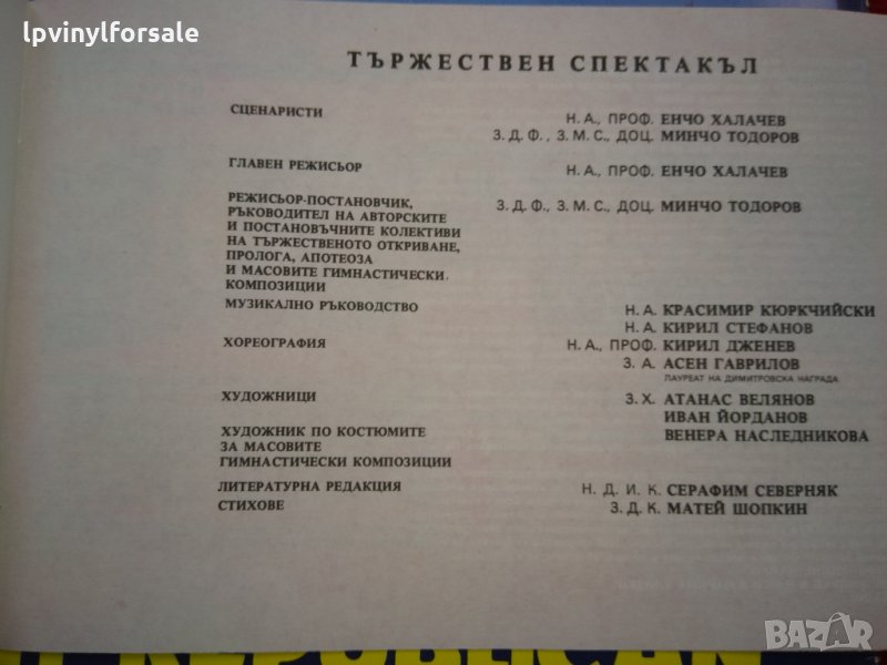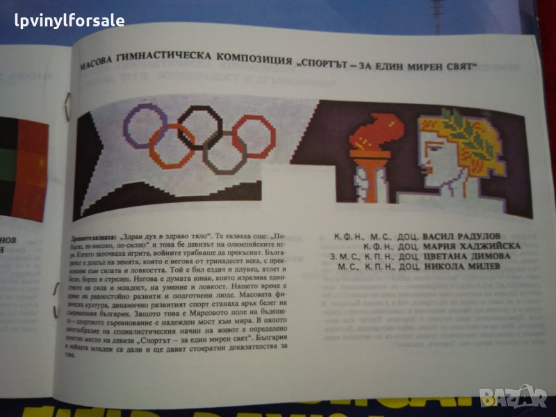 музика за масовите гимнастически композиции за тържествения спектакъл на шеста републиканска спартакиада 15.08.1984